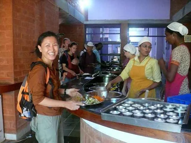 The Solar Kitchen in Auroville is a community dining facility powered by a large solar bowl that generates steam for cooking, reflecting the town's commitment to sustainability. It serves nutritious vegetarian meals sourced from local organic farms, providing a welcoming space for communal dining and social interaction. The Solar Kitchen embodies Auroville’s principles of conscious living and environmental responsibility, bringing people together to share food, ideas, and experiences.